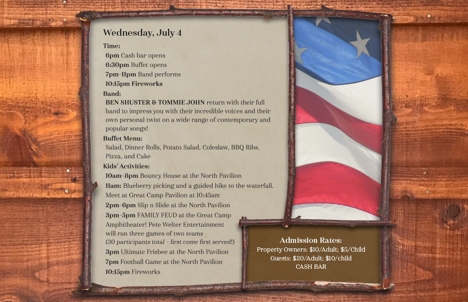 Join us on Wednesday, July 4, for food, fun and fireworks!